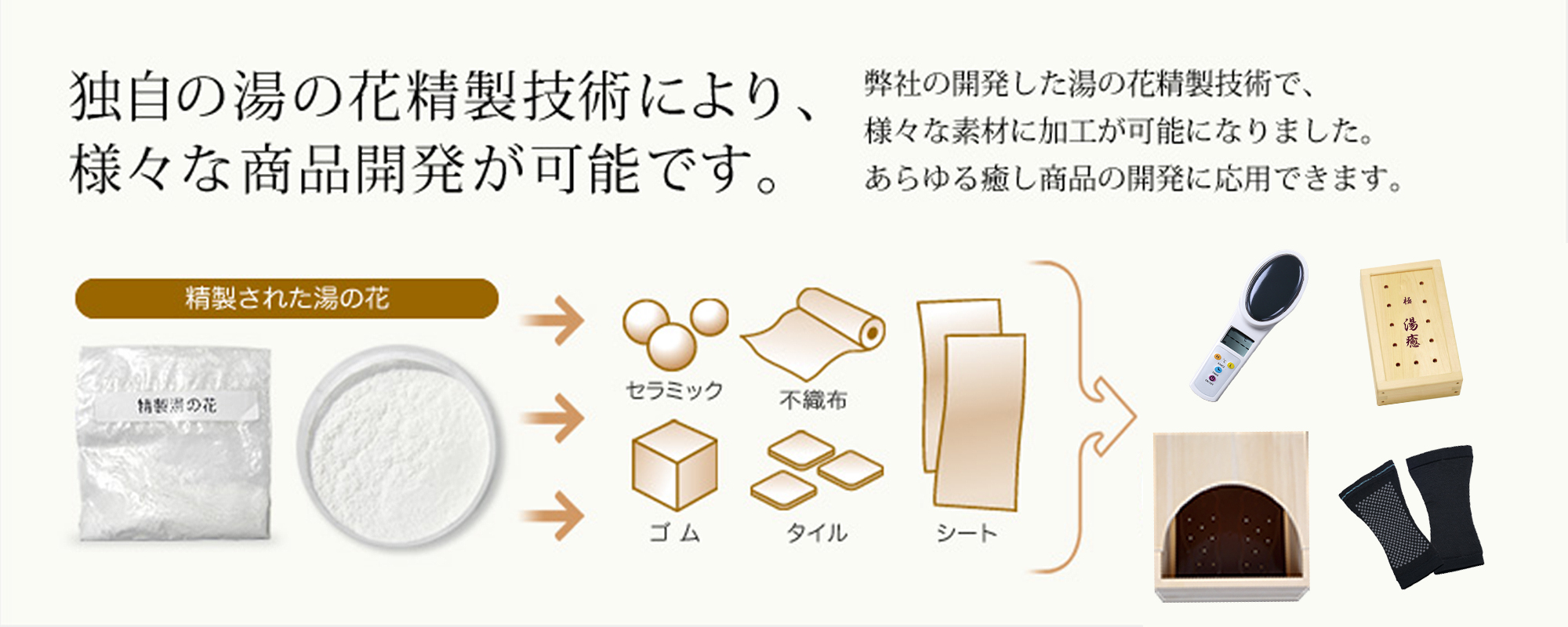 会場では、玉川温泉の湯の花を配合した製品を中心に、